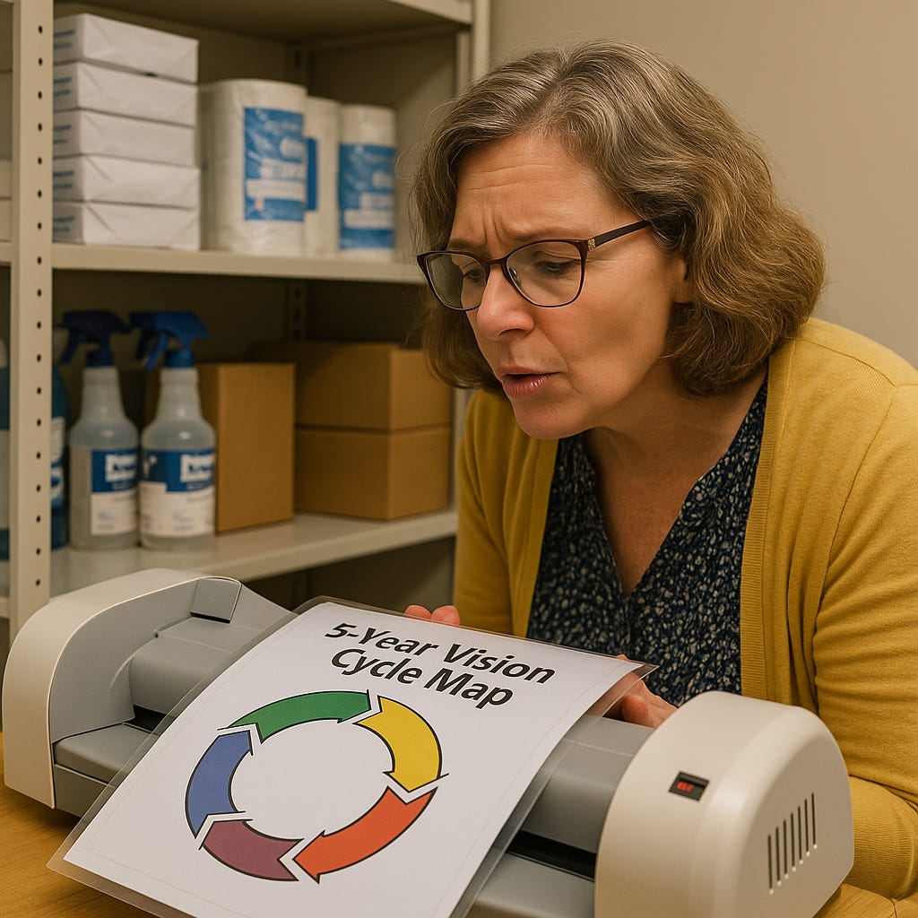 Principal Dunning was last seen in the supply closet laminating copies of the 5-Year Vision Cycle Map while softly whispering: