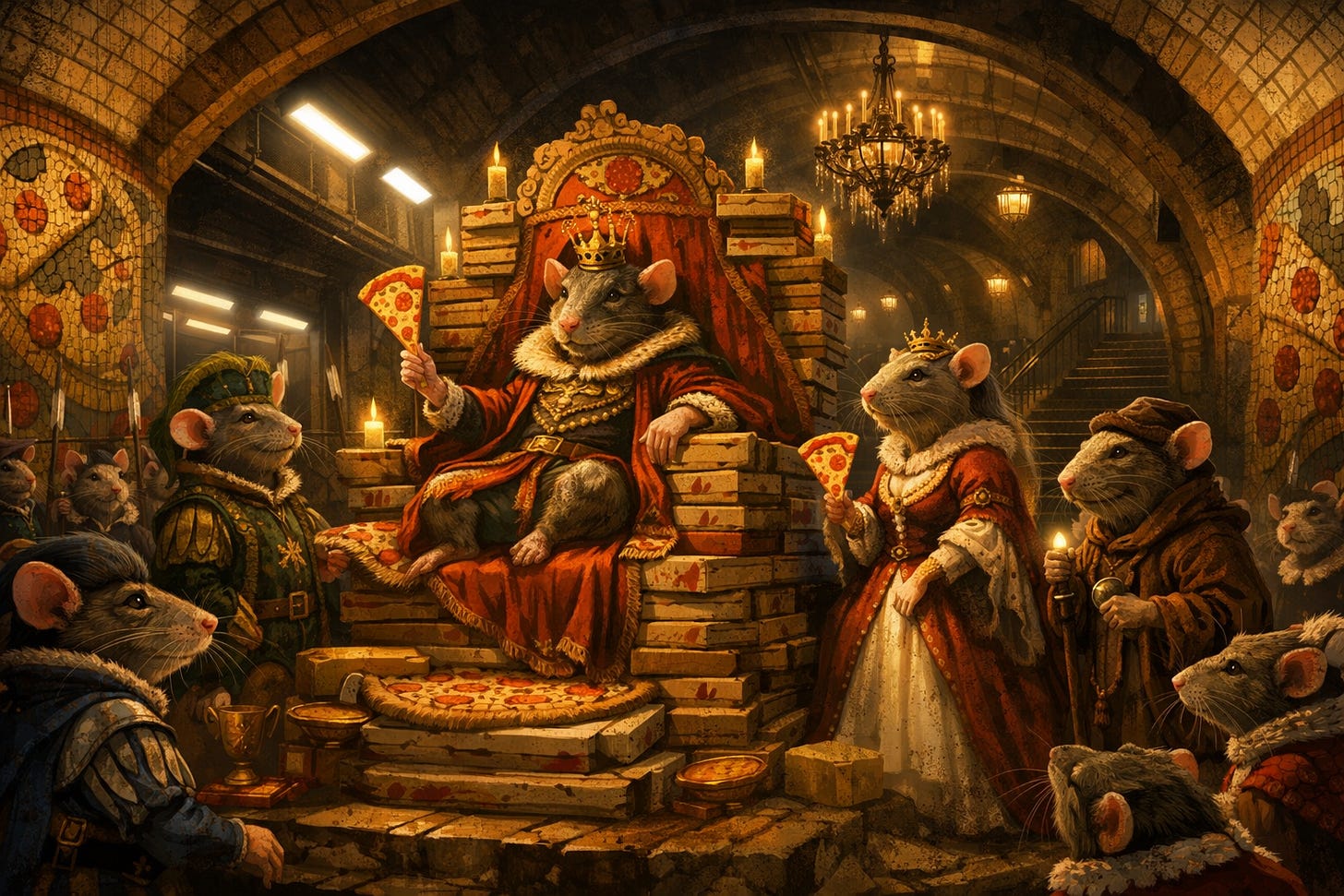 “Pizza Rat Kingdom under the 6 train—TWO”