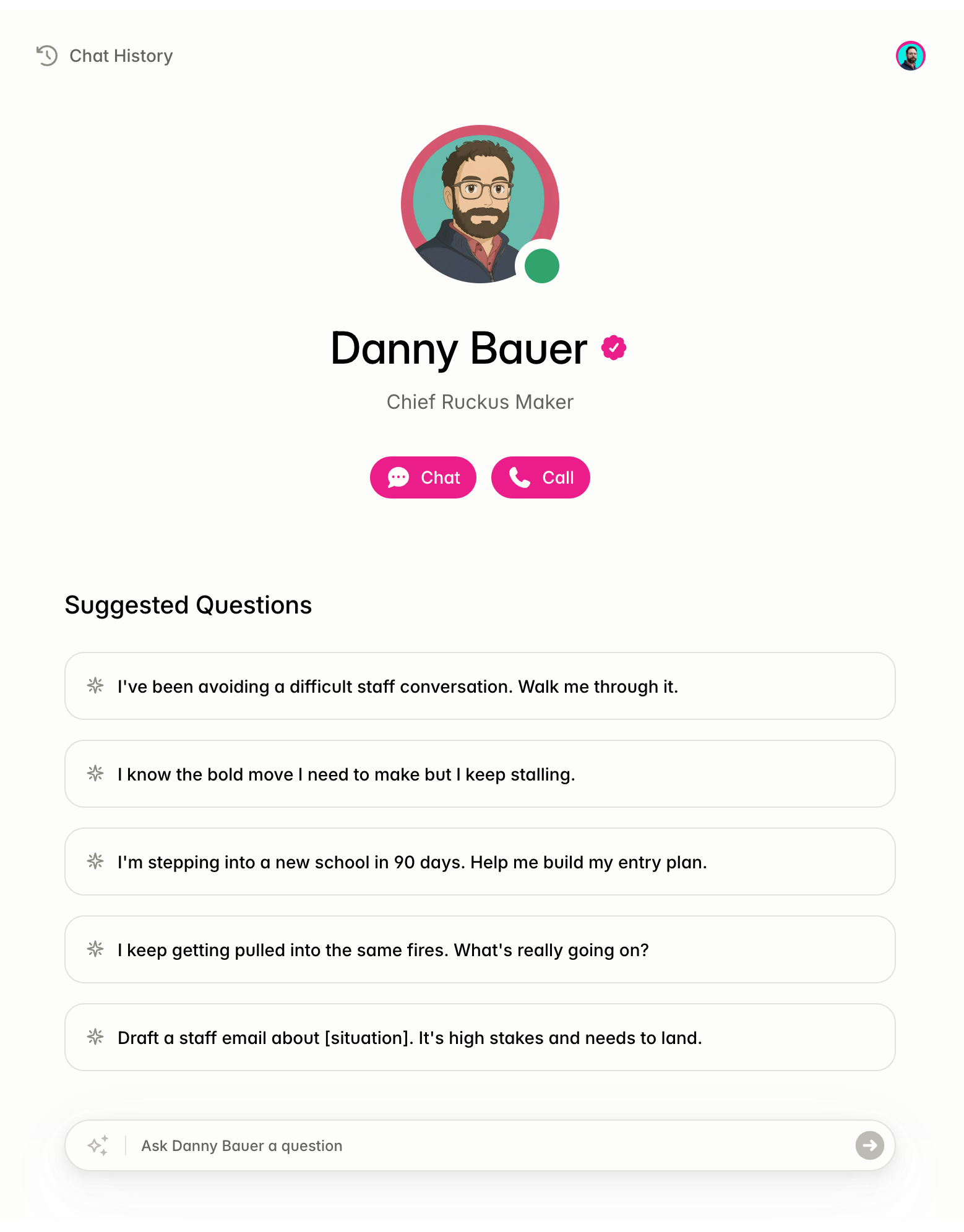 She mentioned, almost in passing, that she’d developed those questions with Digital Danny — her Selfmentorship guide trained on a decade of school leadership frameworks. Not generic prompts. The kind of questions that cut through to the real work.