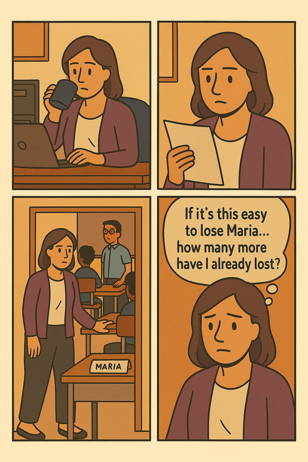 She thought about yesterday’s meeting — the one where she’d spent two hours revising the campus vision with Central Office. They argued over verbs. Vetted synonyms for “rigor.” Left feeling important.