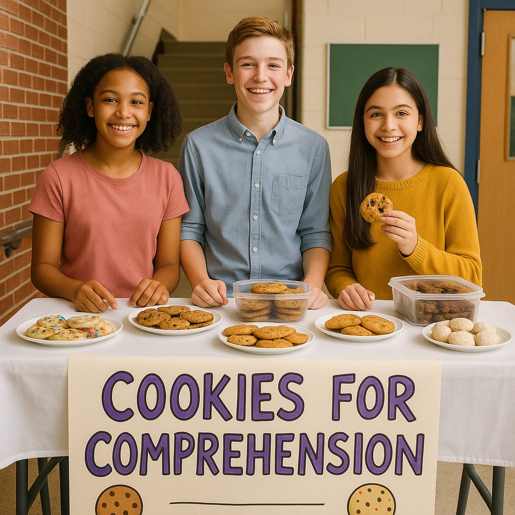 Holding bake sales to afford dry erase markers ("Cookies for Comprehension!").
