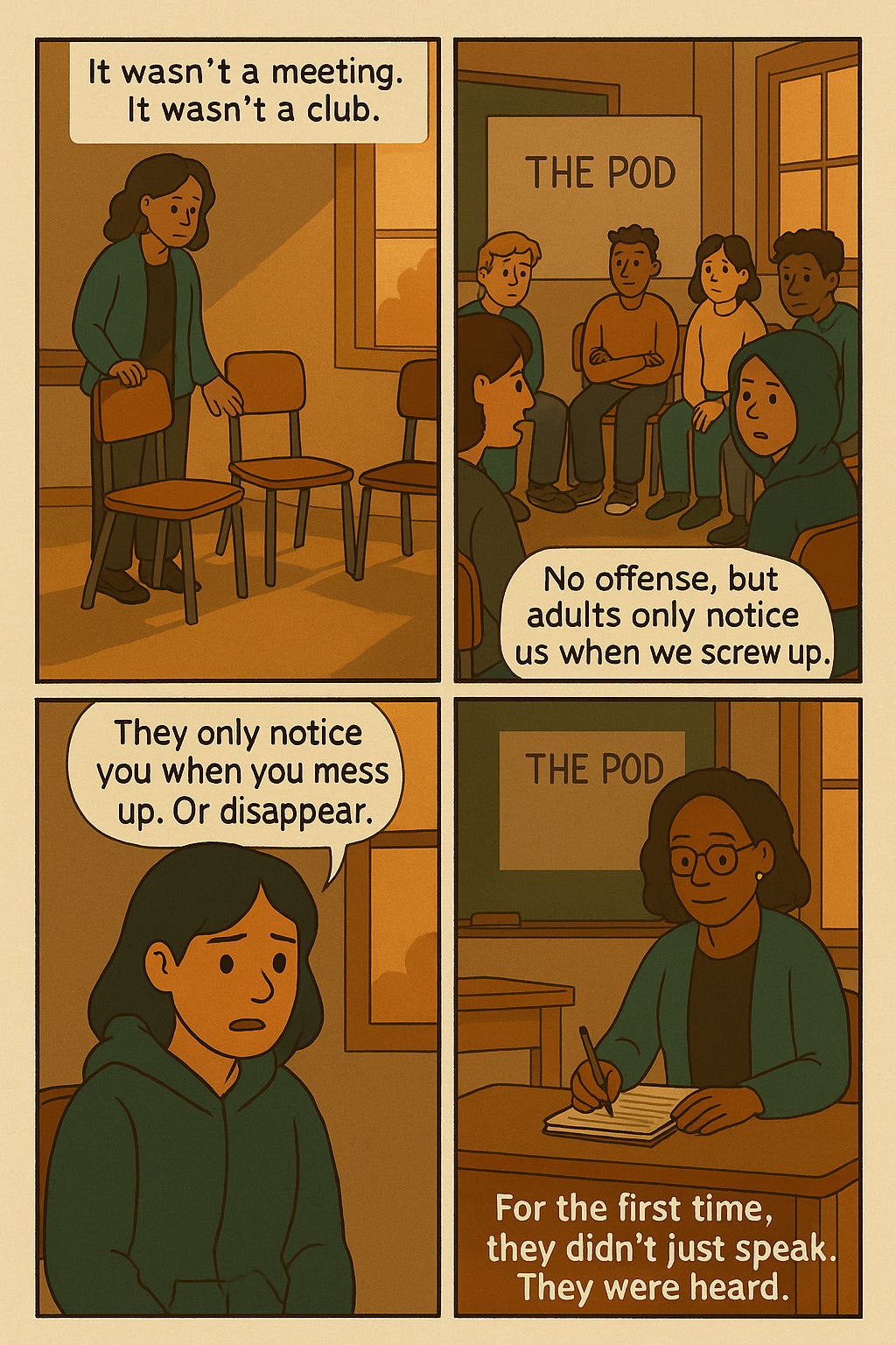 She stood in the center of Room 112, palms damp, heart thudding harder than it had during the last staff meeting. That was predictable. Adults postured, resisted, occasionally nodded. But this? This was wild terrain.