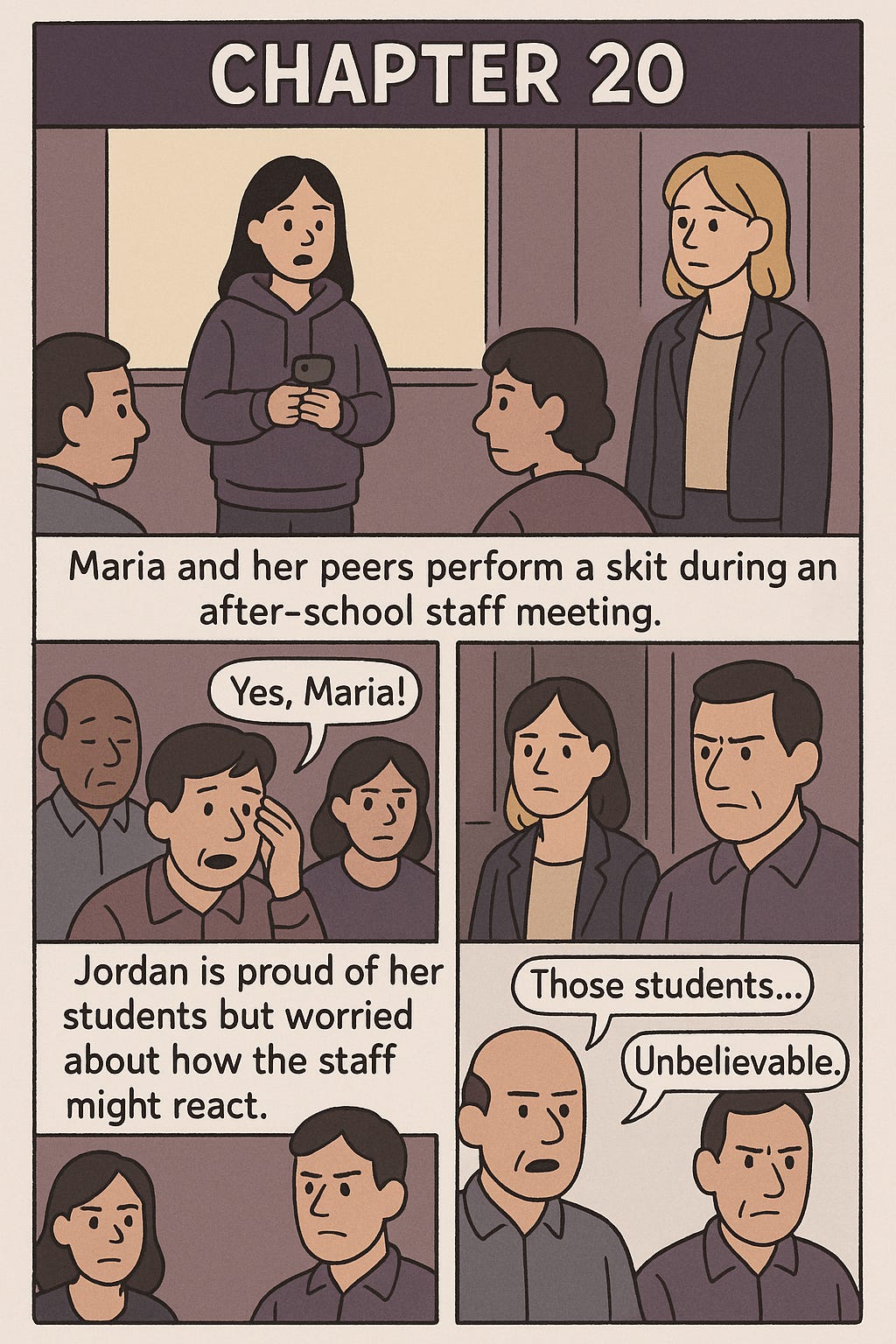 Jordan clicked off the fluorescent lights and let the soft glow of the projector set the mood. Folding chairs scraped against tile as teachers shuffled in, some balancing Chromebooks, others whispering jokes about late buses and lost planning periods.