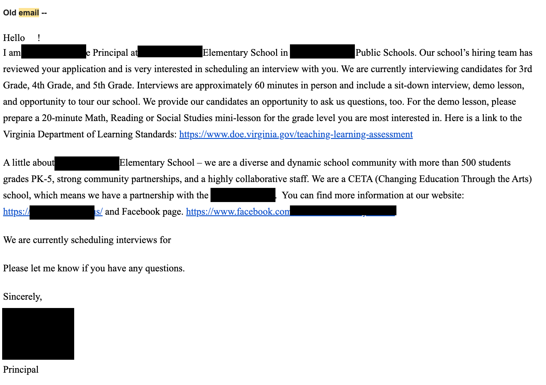 My friend Loren is an awesome principal. Here is the old email he used to send candidates: